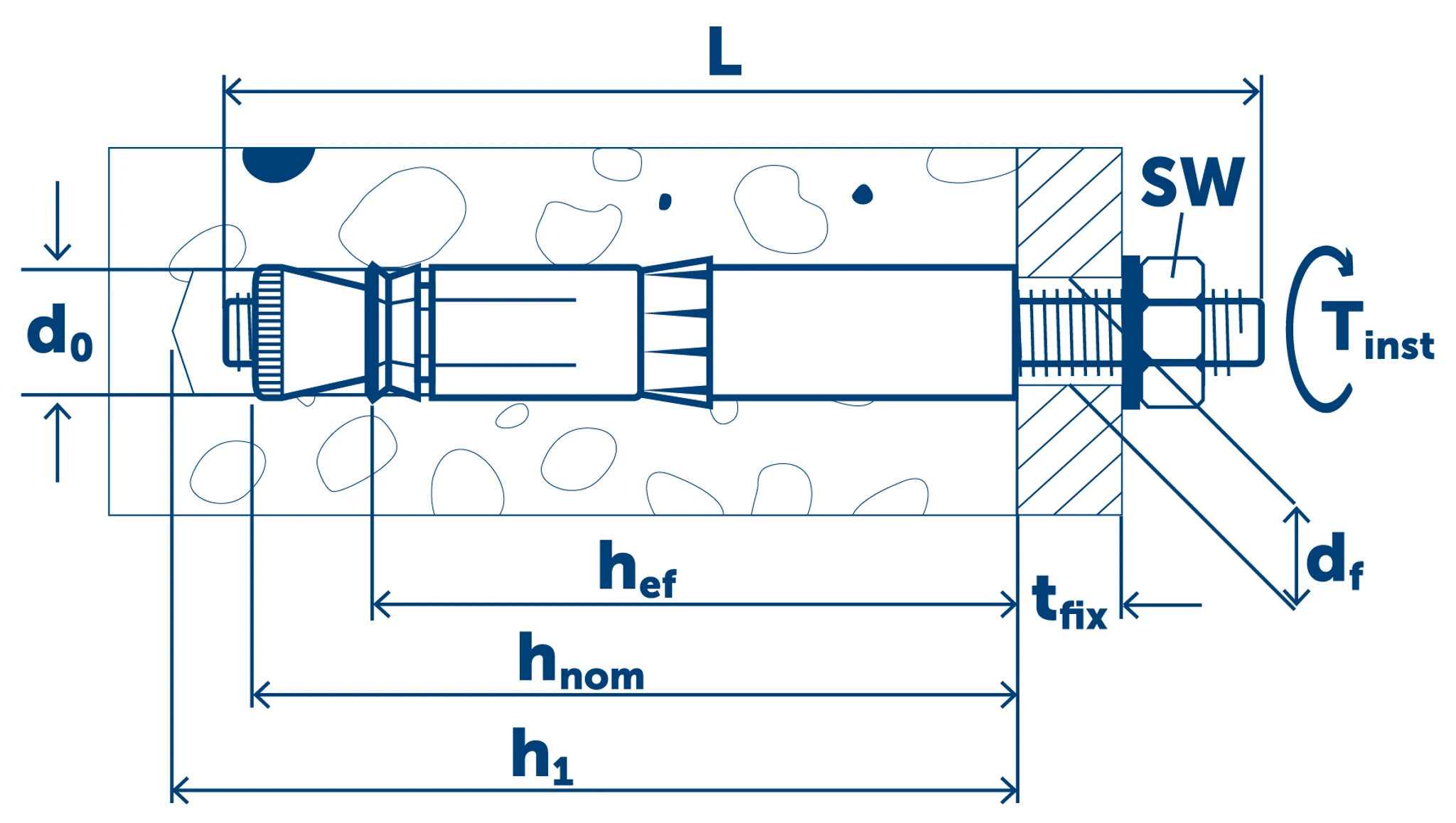 • Automatically self-undercutting, unique heavy duty anchor for pre-set installations.